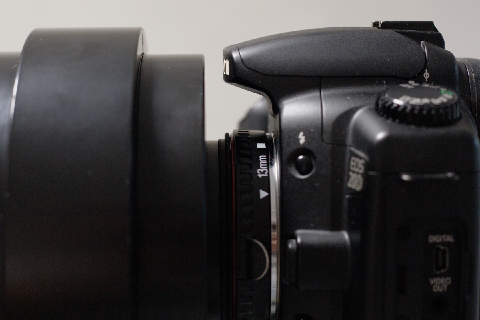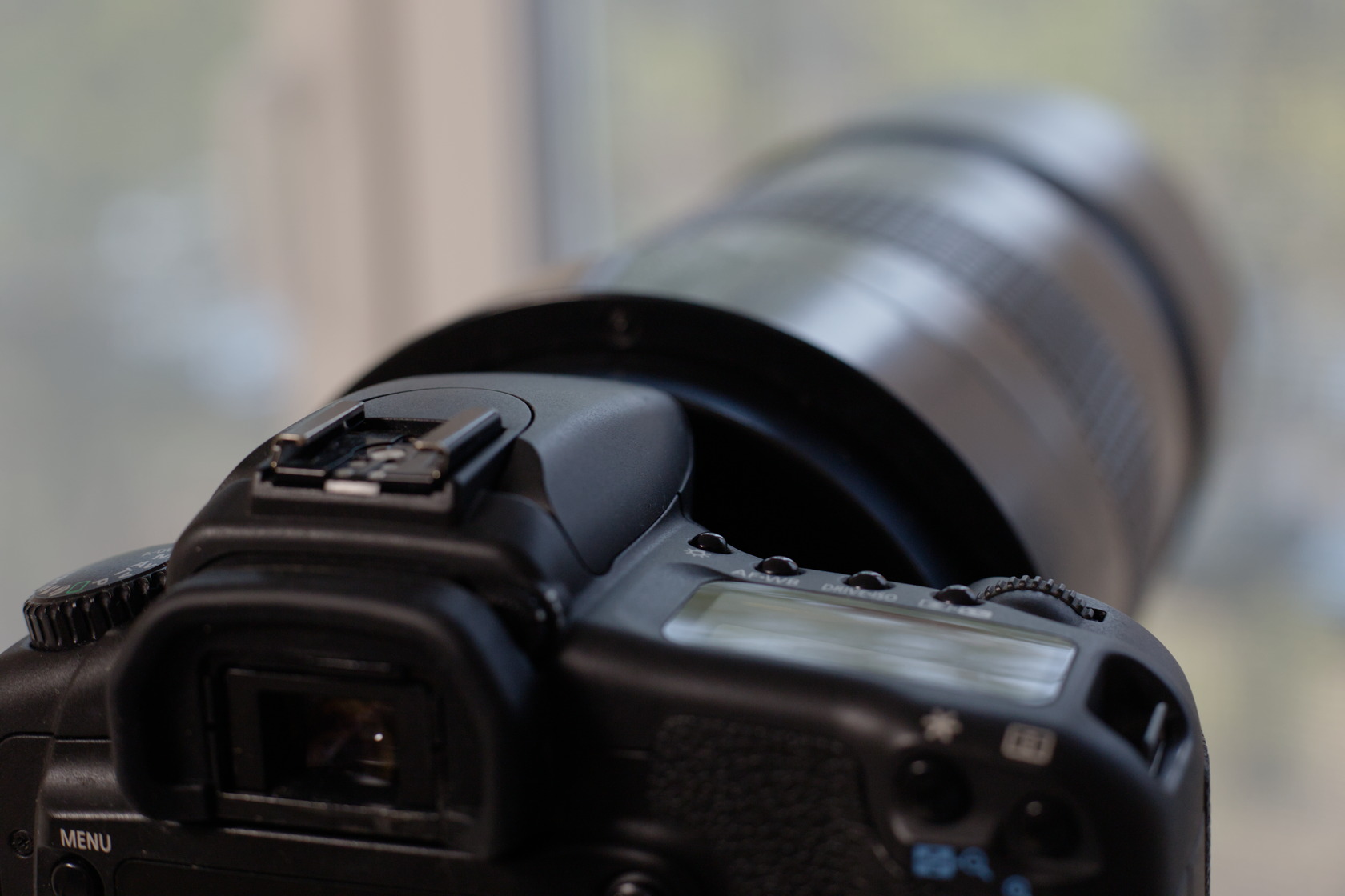 Но есть и минусы. Первый - при таких габаритах он не становится на цифровые зеркалки со встроенной вспышкой - достоинство тупо упирается в козырек. Выход - использовать макрокольцо, чтобы отодвинуть объектив дальше от тушки без потери бесконечности, благо ход фокусировочного кольца позволяет ее докрутить. На полнокадровых камерах все хорошо. И второй минус - снимать тяжко...