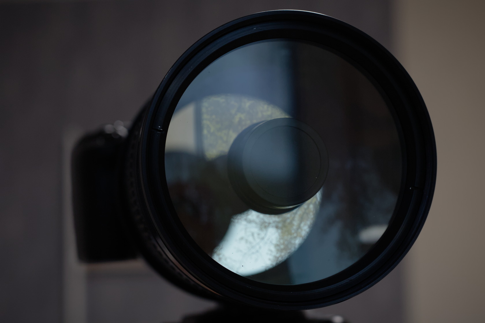 Начнем с того, что объектив зеркально-линзовый. То есть, в оптической схеме кроме хитровыпуклых линз присутствуют зеркала - свет проходит объектив не напрямую, а отражаясь туды-сюды от внутренних зеркал. Если посмотреть через переднюю линзу, они хорошо заметны, но для любования собой не подходят. Такое устройство объектива позволяет в скромных габаритах корпуса реализовать длиннющее фокусное расстояние. В нашем случае аж 1000мм! А это целый метр, заметьте.