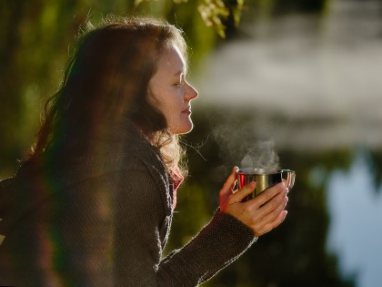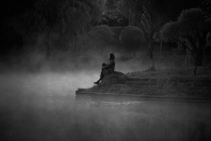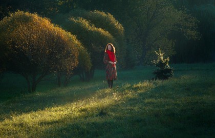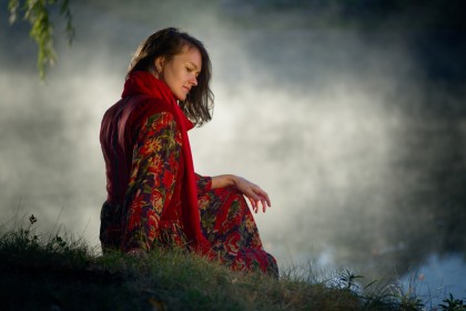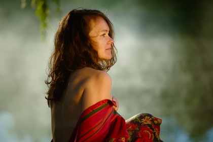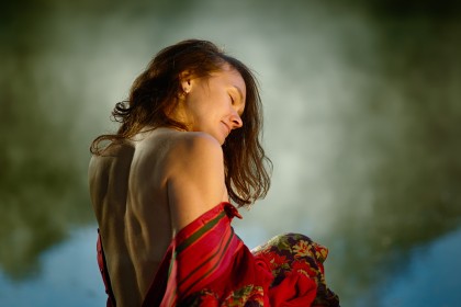 Провели фотосессию прохладным сентябрьским утром. Не смотря на то, что солнце встает не так быстро, условия съемки меняются стремительно. Вот, его еще нет и стоит туман над водой, но пробегают считанные минуты - и в первых лучах туман рассеивается. На все про все оказался только час.
